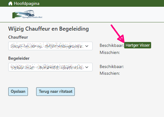 Bij het maken van de ritstaat wordt de beschikbaarheid aangegeven en kunnen de vrijwilligers ingedeeld worden.