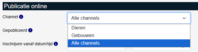 Hierin kun je aangeven bij welk kanaal het uitje hoort. Kies je “Alle channels” dan wordt het uitje in alle filters weergegeven. Kies je een specifiek kanaal, dan wordt het uitje alleen bij dat kanaal weergegeven.