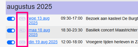 Als de channels aanstaan, komt er een extra veld in het detail van het uitje: