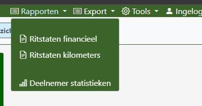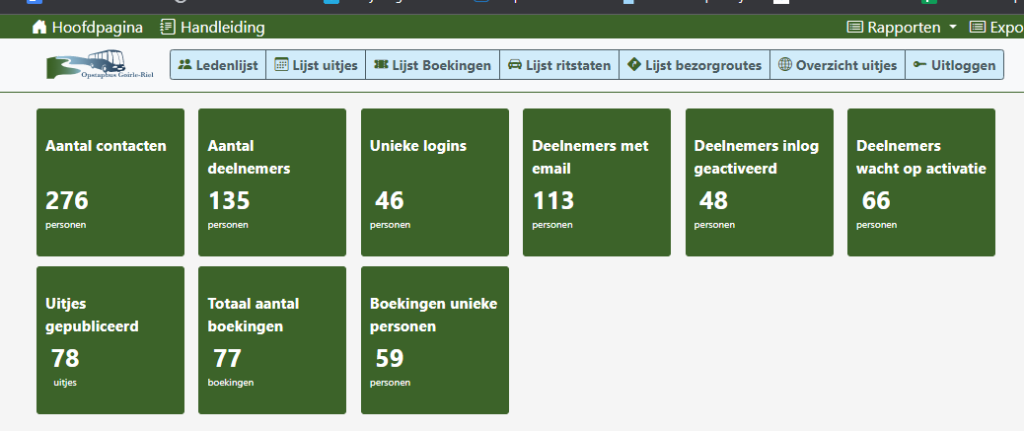 In het groene hoofdmenu kunnen bestuur en super-users zien wat er gebeurt met de statistieken: