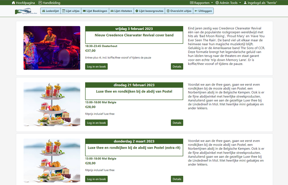 Via de URL https://opstapboeker.nl komen de mensen in het overzciht van de uitjes. Men hoeft niet ingelogd te zijn om de uitjes te kunnen zien in dit overzicht.