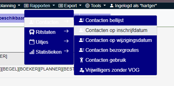 In de opstapboeker zitten diverse standaard rapporten. Deze kun je vinden in het hoofdmenu bij “Rapporten”.