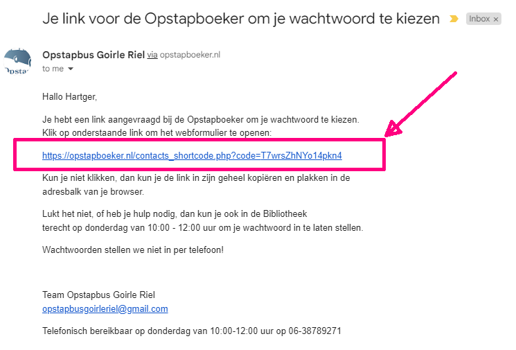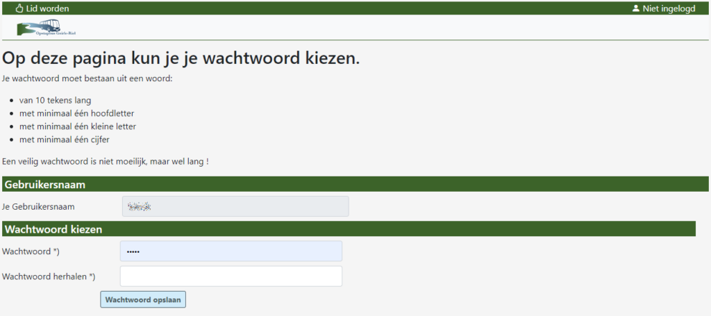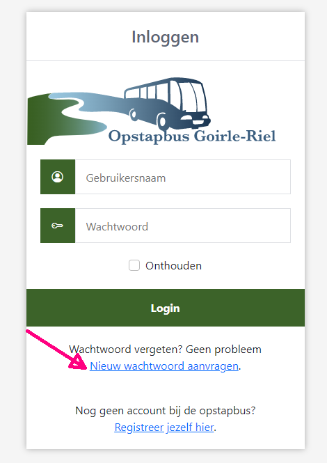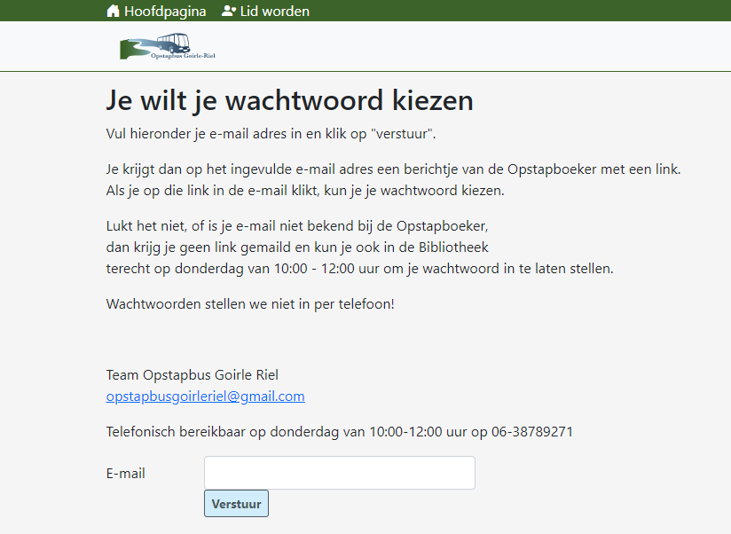 Klik je op de link, dan keer je terug naar de site van de opstapboeker en kun je je wachtwoord aanpassen. Je gebruikersnaam kun je niet aanpassen.